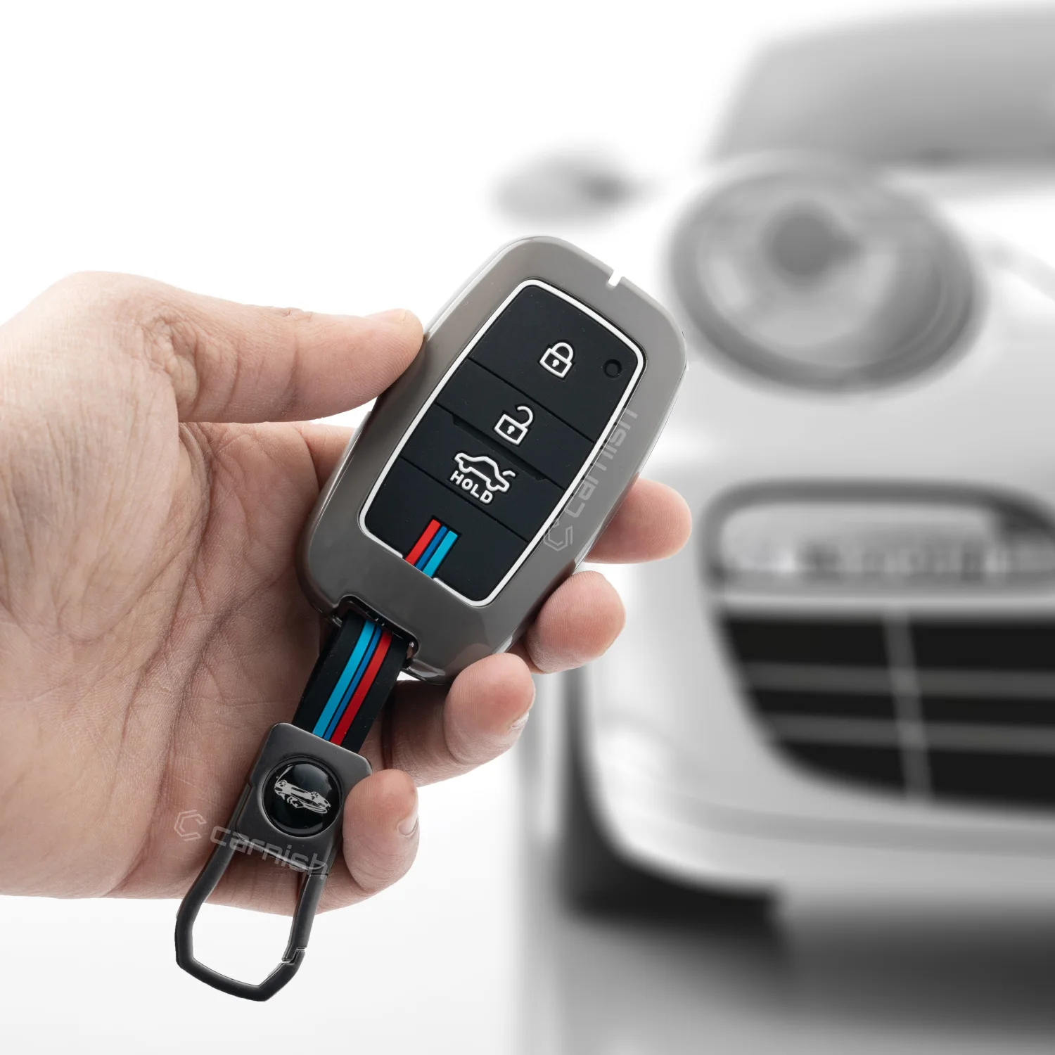 Metal Silicone Car Key Cover For Kia: Seltos, Sonet, Carens, Carnival Smart Key